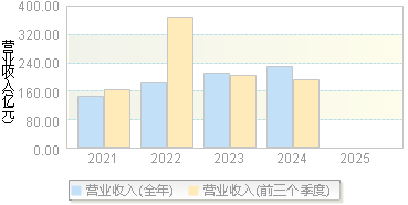 营业收入增长率(%)10.4310.92-1.28-4.11-3.21
