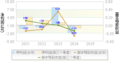 | 利润总额 | -0.21 | -1.32 | -3.62 | -0.31 | 0.80 |