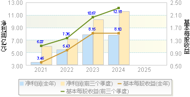 | 基本每股收益 | 6.9300 | 4.4100 | 10.4400 | 8.9800 | 6.7600 |