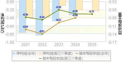 | 净利润 | -0.86 | -0.55 | -0.30 | -1.30 | -0.90 |