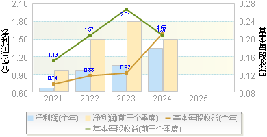 | 基本每股收益 | 0.2700 | 0.1200 | 0.8200 | 0.6400 | 0.4400 |