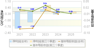 | 净利润 | -0.89 | -0.60 | -0.29 | -0.42 | -0.08 |
