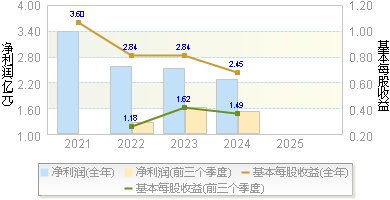 | 基本每股收益 | 0.9100 | 0.2900 | 1.9500 | 1.3200 | 0.9450 |