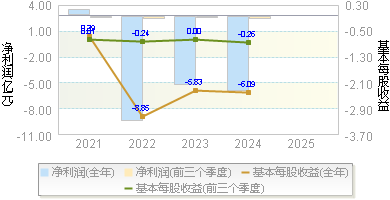 | 基本每股收益 | -0.3700 | -0.0900 | -2.2065 | 0.1200 | 0.2200 |