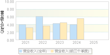 营业收入增长率(%)25.049.47-4.03-2.67-18.30