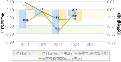 | 净利润 | -1.18 | -0.56 | -0.69 | -0.51 | -0.18 |