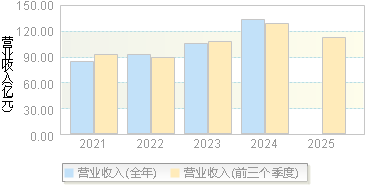卫星化学2025年三季实现营业收入113.11亿元,比上年同期增长-12.15%。