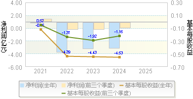 | 基本每股收益 | -0.2500 | -0.1300 | -0.7300 | -0.3200 | -0.2300 |