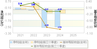 | 基本每股收益 | -0.8700 | -0.3200 | -1.2900 | -0.4600 | -0.2900 |