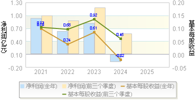| 基本每股收益 | -0.0300 | 0.0500 | 0.3400 | 0.3700 | 0.2900 |