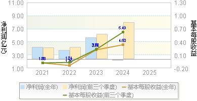 | 基本每股收益 | 0.6500 | 0.3500 | 2.1100 | 2.1300 | 1.2800 |
