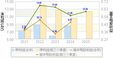 | 摊薄每股收益 | 1.4550 | 0.8521 | 0.5693 | 2.0635 | 1.6005 |