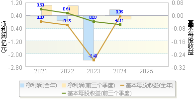 | 经营性现金流 | -0.45 | 1.04 | 1.52 | -0.30 | 0.63 |