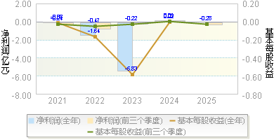 | 净利润 | -0.57 | -0.29 | -0.26 | -0.40 | -0.42 |