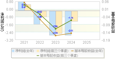 | 净利润 | -1.15 | -0.98 | -6.11 | -3.60 | -2.46 |