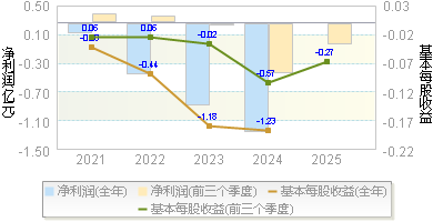 | 净利润 | -1.19 | -0.92 | -0.38 | -3.43 | -2.20 |