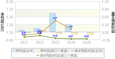 | 净利润 | -1.52 | -0.93 | -0.51 | 0.42 | -1.55 |