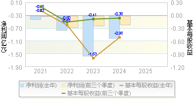 | 利润总额 | -0.63 | -0.27 | -1.64 | -0.70 | -0.34 |