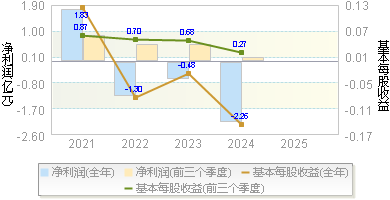 | 基本每股收益 | -0.0500 | -0.0100 | -0.1100 | 0.0300 | 0.0200 |