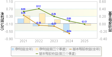 | 净利润 | -0.55 | -0.42 | -0.23 | -0.26 | 0.38 |