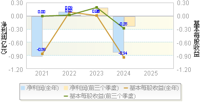 | 净利润 | -0.13 | -0.06 | -1.43 | -0.49 | -0.21 |