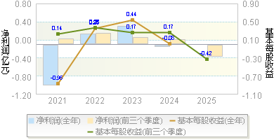 | 净利润 | -0.75 | -0.33 | -0.26 | 0.63 | 0.71 |