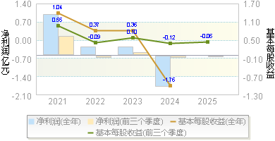 | 净利润 | -0.18 | -0.12 | 0.00 | -2.21 | -0.45 |