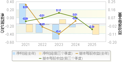 | 净利润 | -0.67 | -0.38 | -0.05 | 0.04 | 0.12 |