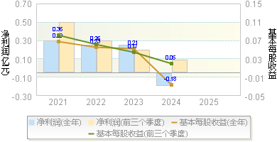 | 净利润 | -0.06 | -0.03 | 0.31 | 0.49 | 0.44 |