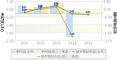 | 净利润 | 0.06 | 0.03 | -0.26 | -0.53 | 1.42 |