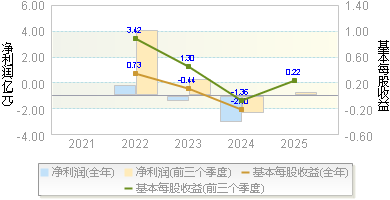 | 净利润 | 0.76 | 0.54 | 0.48 | -3.02 | -0.92 |