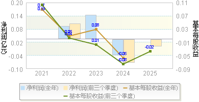 | 净利润 | -0.05 | -0.03 | -0.01 | -0.18 | -0.13 |