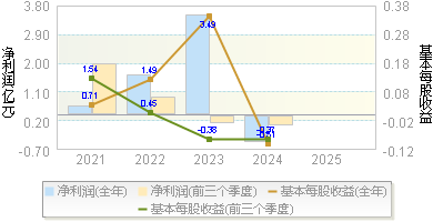 | 净利润 | -0.38 | -0.98 | -1.83 | -1.32 | -0.95 |