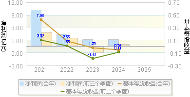 | 净利润 | 1.33 | 0.90 | -0.24 | -1.00 | -1.11 |