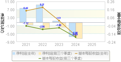 | 基本每股收益 | -0.2800 | -0.2200 | -0.6200 | -0.4400 | -0.2400 |