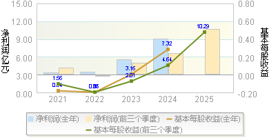 | 基本每股收益 | 1.1400 | 0.6300 | 0.2900 | 1.0700 | 0.6700 |