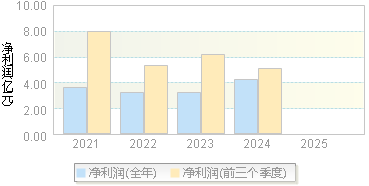 | 净利润 | 9.60 | 4.14 | 21.26 | 17.00 | 11.85 |