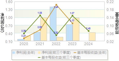 | 基本每股收益 | 0.3704 | 0.3065 | 0.1350 | 0.5700 | 0.4660 |