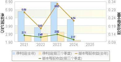 | 基本每股收益 | 0.5700 | 0.2100 | 0.7600 | 0.5300 | 0.4300 |
