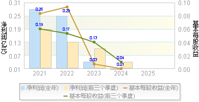 | 净利润 | -0.07 | -0.06 | 0.28 | 0.27 | 0.23 |