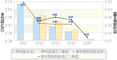 | 基本每股收益 | 0.2500 | 0.1700 | 0.1300 | 0.7300 | 0.5600 |