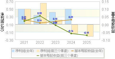 | 净利润 | -0.73 | -0.55 | -0.31 | 0.30 | 0.07 |