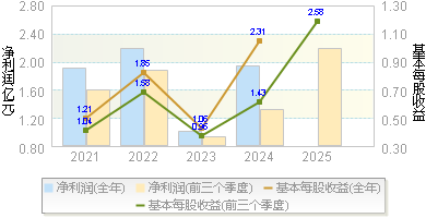 | 基本每股收益 | 2.8000 | 1.8000 | 0.8100 | 2.2300 | 1.3600 |