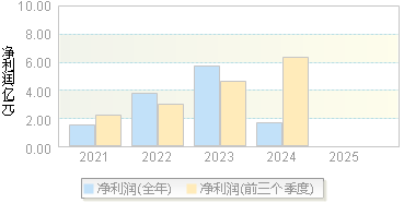 | 投资性现金流 | 2.18 | 0.34 | -1.79 | 0.52 | 1.88 |