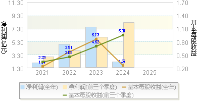 | 基本每股收益 | 2.0800 | 0.8500 | 3.2200 | 2.8800 | 1.6300 |
