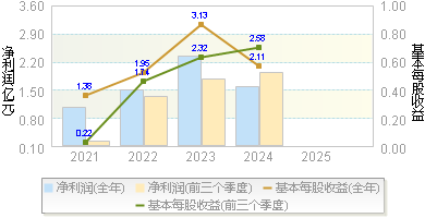 | 基本每股收益 | 0.8200 | 0.2900 | 2.0600 | 1.6300 | 1.1000 |
