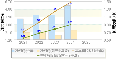 | 基本每股收益 | 2.0200 | 0.9900 | 3.9300 | 2.5300 | 1.7800 |