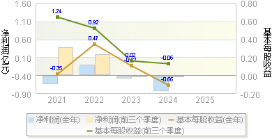 | 基本每股收益 | -0.2400 | -0.0900 | -0.1200 | 0.0500 | 0.0600 |