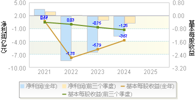 | 基本每股收益 | -0.8200 | -0.2200 | -2.1600 | -0.8900 | -0.4100 |
