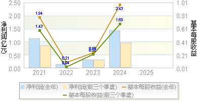 | 基本每股收益 | 1.2700 | 0.5000 | 1.4200 | 0.8400 | 0.4400 |